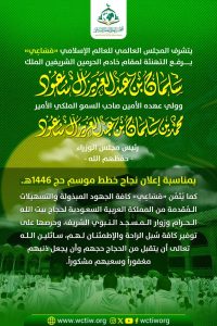 المجلس العالمي للعالم الإسلامي (مَسَاعِي) يهنئ خادم الحرمين الشريفين وسمو ولي عهده الأمين على نجاح خطط موسم حج 1446هـ